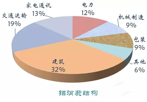 鋁主要應(yīng)用于建筑、交通運(yùn)輸、家電通訊、電力、包裝和機(jī)械制造等領(lǐng)域。2014年我國(guó)鋁土礦儲(chǔ)量3250萬(wàn)噸,產(chǎn)量2330萬(wàn)噸,原鋁消費(fèi)量2406萬(wàn)噸。