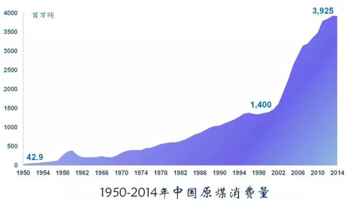 煤炭是中國(guó)最重要的能源礦產(chǎn),在能源消費(fèi)中占比一直高達(dá)70%左右,居絕對(duì)主導(dǎo)地位,對(duì)中國(guó)經(jīng)濟(jì)發(fā)展具有至關(guān)重要的意義。1950年-2014年,中國(guó)原煤消費(fèi)量激增90倍以上。