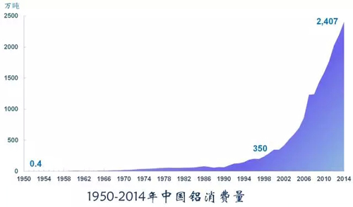 鋁是全球消費(fèi)量最大的有色金屬,是目前應(yīng)用十分廣泛的最經(jīng)濟(jì)適用的原材料之一。中國(guó)鋁消費(fèi)持續(xù)穩(wěn)定增長(zhǎng),2014年的消費(fèi)量是2000年消費(fèi)量的7倍,是1950年的3400多倍。